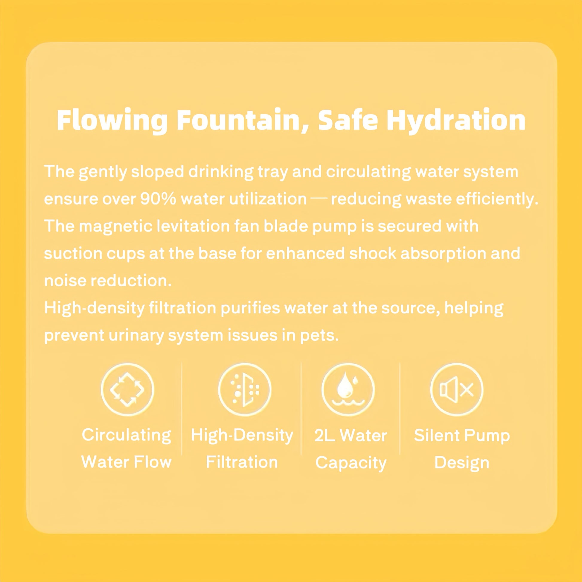 Optimized fountain height reduces water noise while still attracting your pet — ensuring a restful sleep for both you and your furry companion.