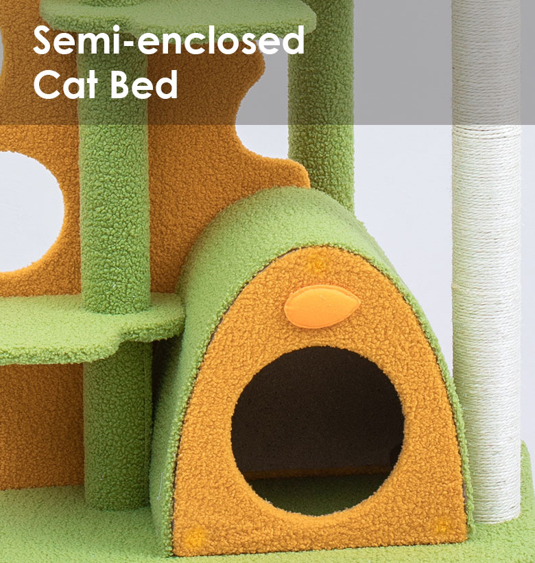 Cozy Enclosed Bed for Napping – The bottom tier of the cat tree features a cozy enclosed space where your cat can retreat for some peace and quiet or a nap.