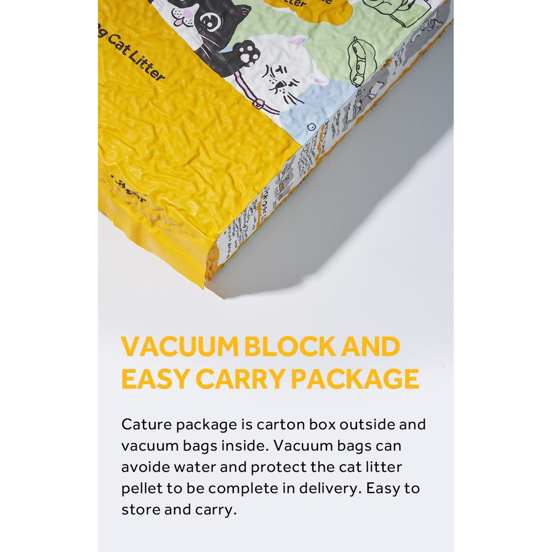 Vacuum sealed cat litters are optimized to reduce package volume which saves our customers from paying extra in shipping cost for heavy items.