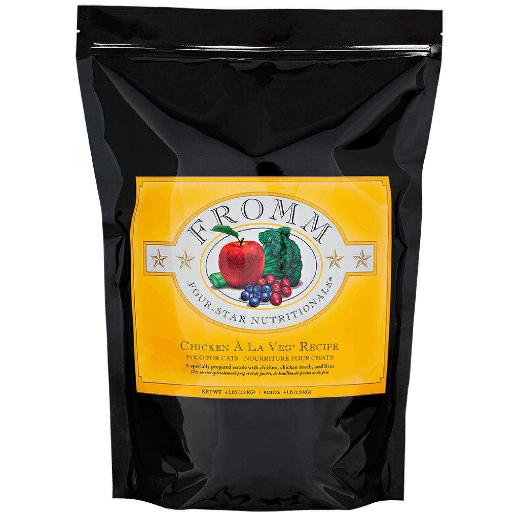 弗洛姆猫四星级营养鸡肉La Veg食谱食品的配方可满足AAFCO在所有生命阶段的猫食营养状况所建立的营养水平。s.