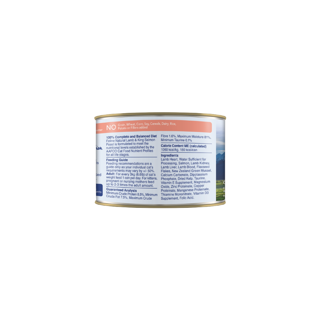 Made in New Zealand with cage-free Chicken and grass-fed, free-range Lamb, this rich-in-protein and highly palatable Chicken & Lamb diet is the perfect complete and balanced meal. Rich in taurine to support and maintain healthy eyes and, this Chicken & Lamb feast is a great source of protein and fats.