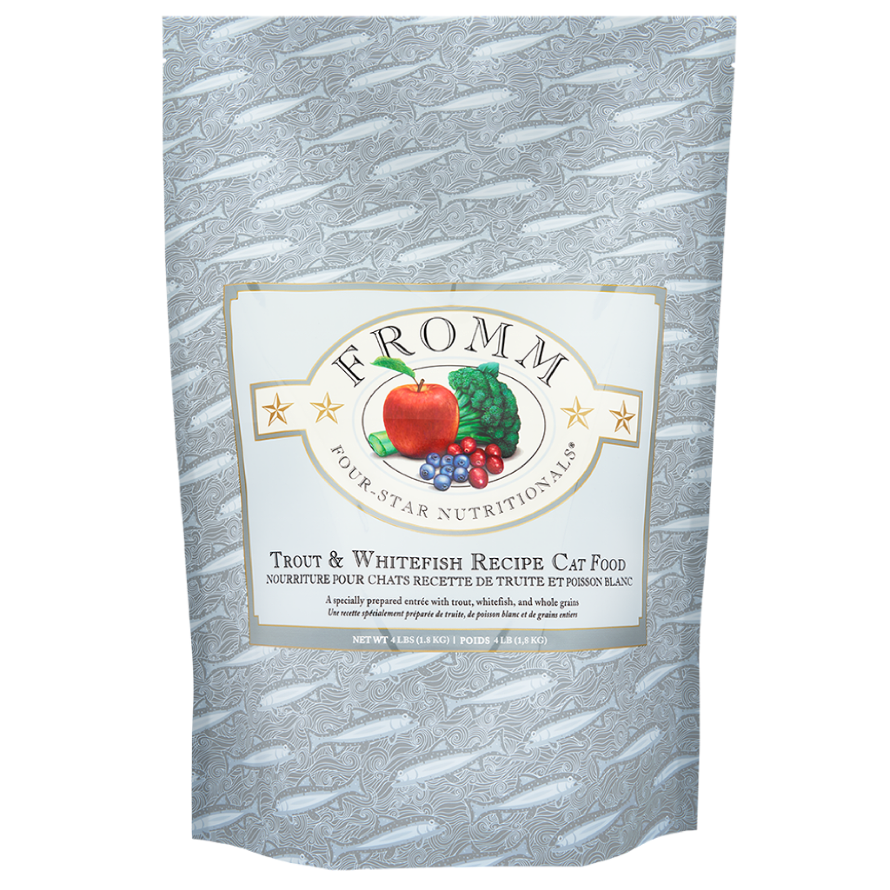 弗洛姆四星级营养鳟鱼怀特菲什(Whitefish)配方猫粮配方可满足AAFCO猫粮营养素谱确定的所有生命阶段的营养水平。.