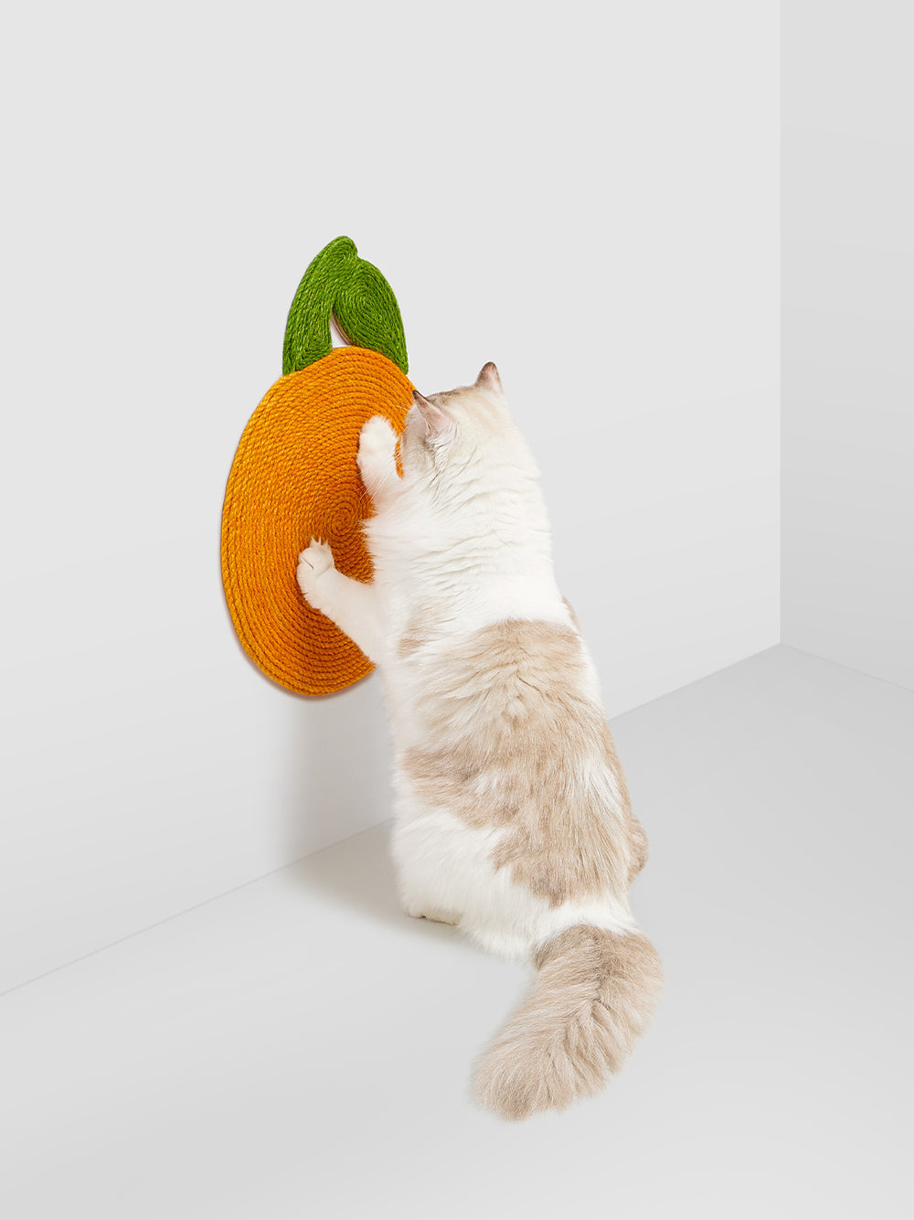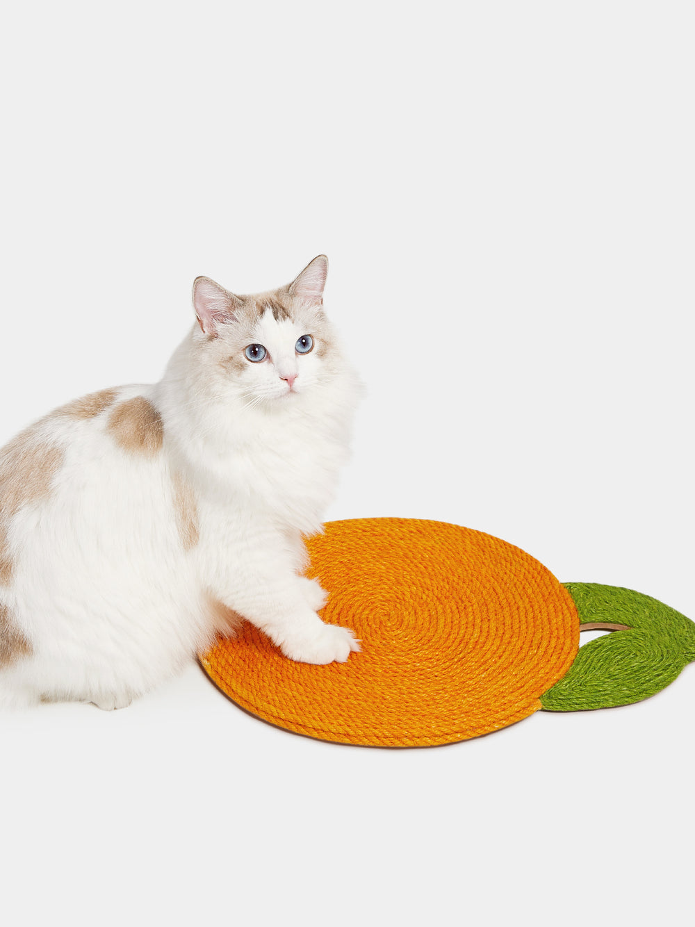 A true cat favorite that goes anywhere and everywhere. Sporting our signature tangerine design, our Tangerine Cat Scratching Board is hand-made with an all-natural jute twine that cats just can’t seem to scratch enough. This juicy fruit sticks to most flat surfaces, making the floor, the wall, or anywhere else fair game – just not the furniture.
