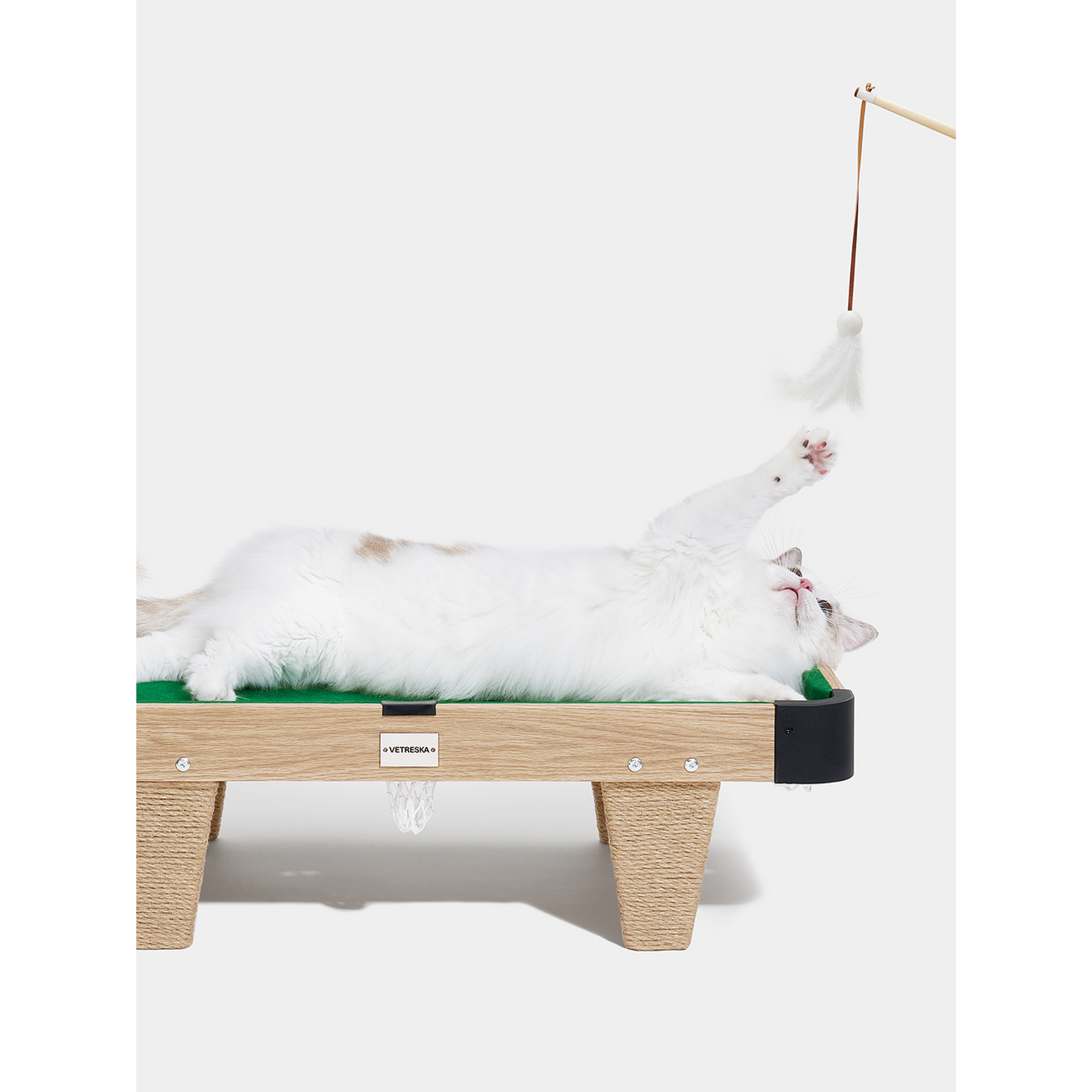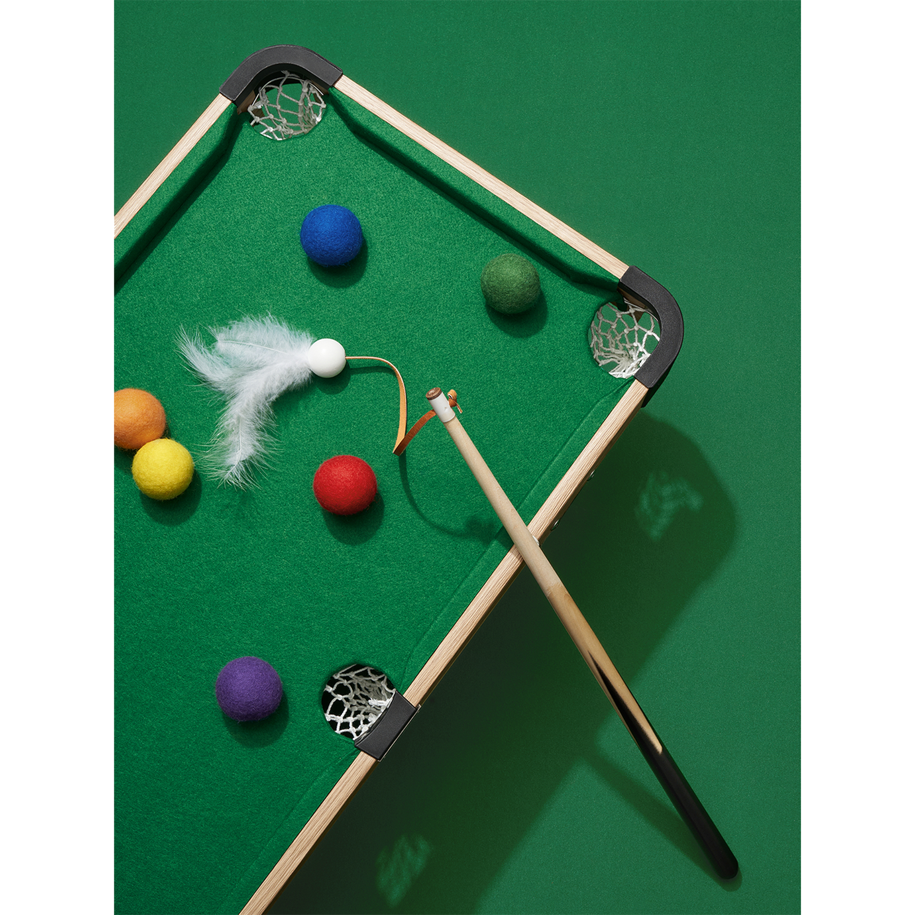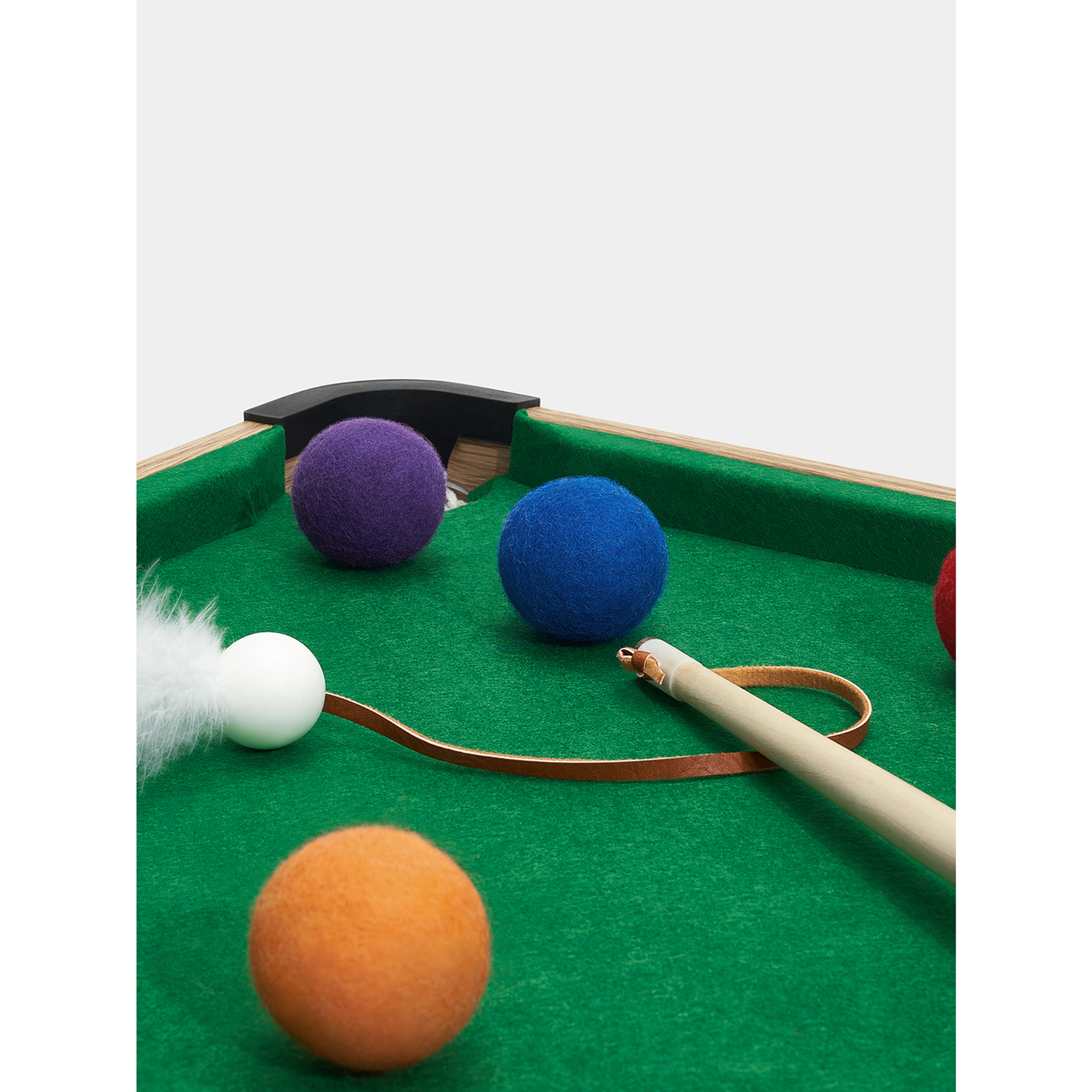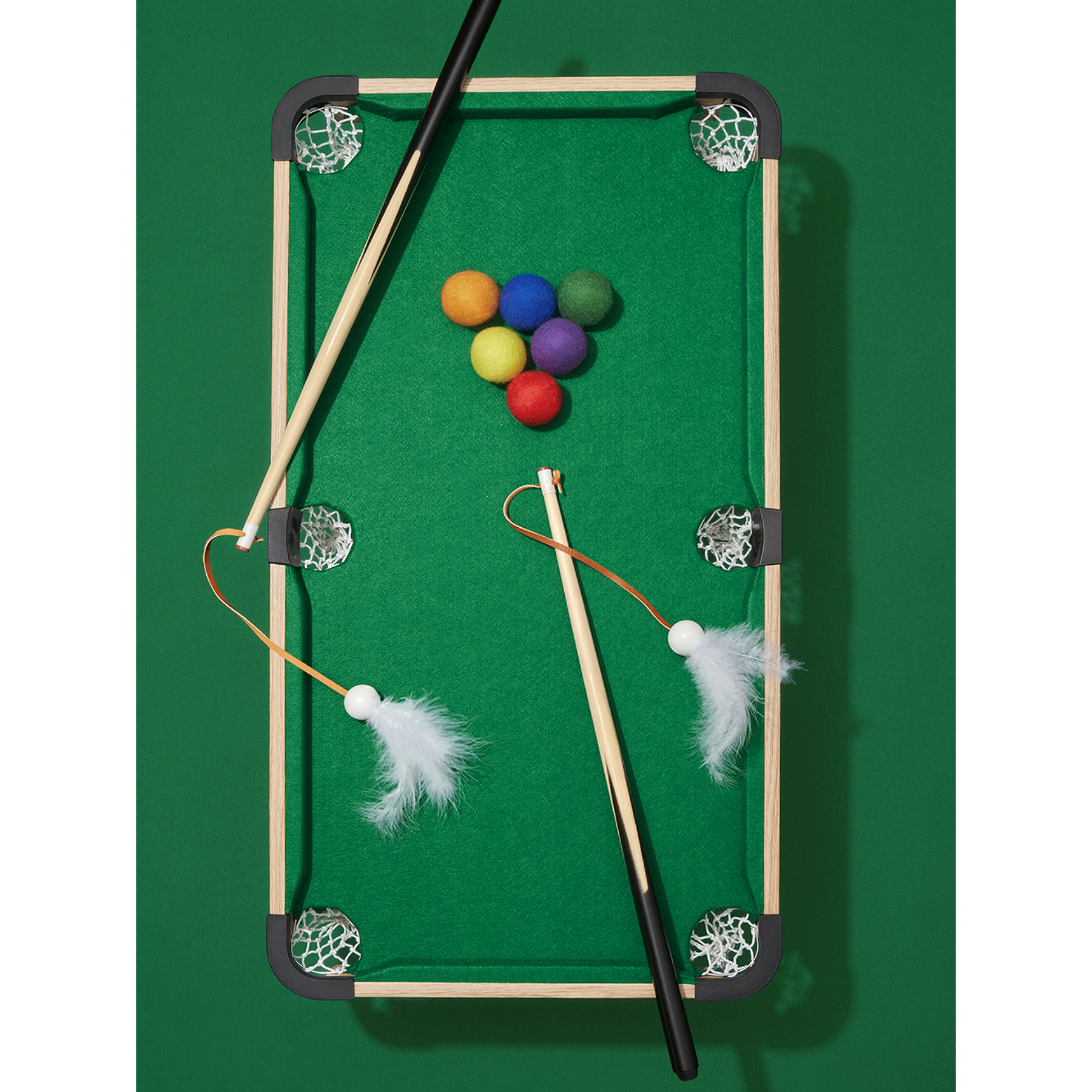 Keep your eye on the ball and play a round of billiards with one of our more unique cat toys! This extremely well designed, and high-quality snooker toy features a solid wood construction, durable jute rope, and fun feathers for your cat to maximize its fun during play time. We have also included fun cue sticks, that act as wands, and snooker balls filled with catnip. If your cat gets tired after all this fun, they can take a nice nap on the large pool table covered in soft felt fabric. Yes, that’s right, we have thought of everything!