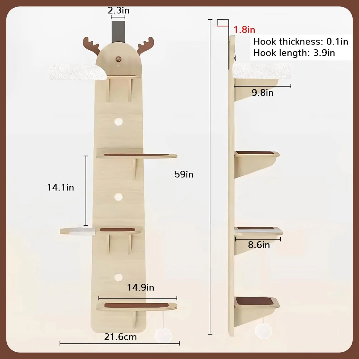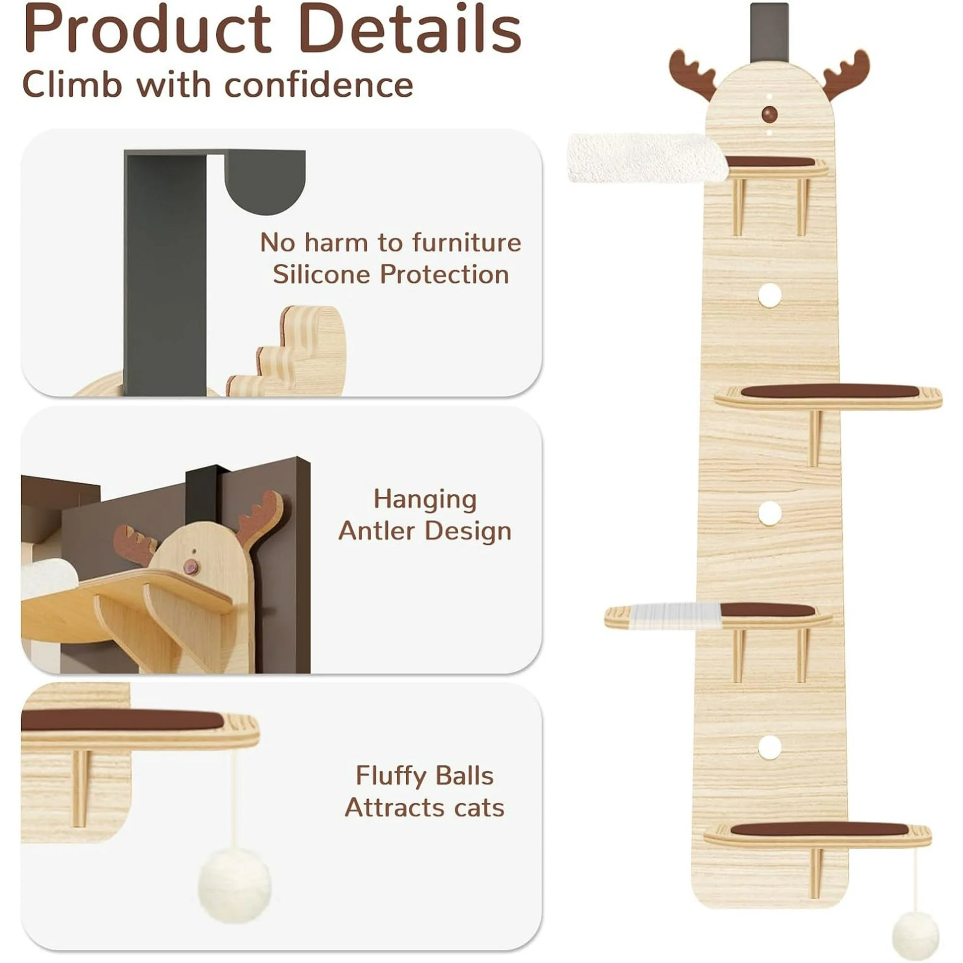 Multiple spacious climbing layers: Our over the door cat tree features four spacious climbing layers, providing your cats with ample space to explore and play. Whether they want to observe the world outside or jump between different levels, your cats will have enough room on this cat door climber to showcase their incredible jumping abilities.