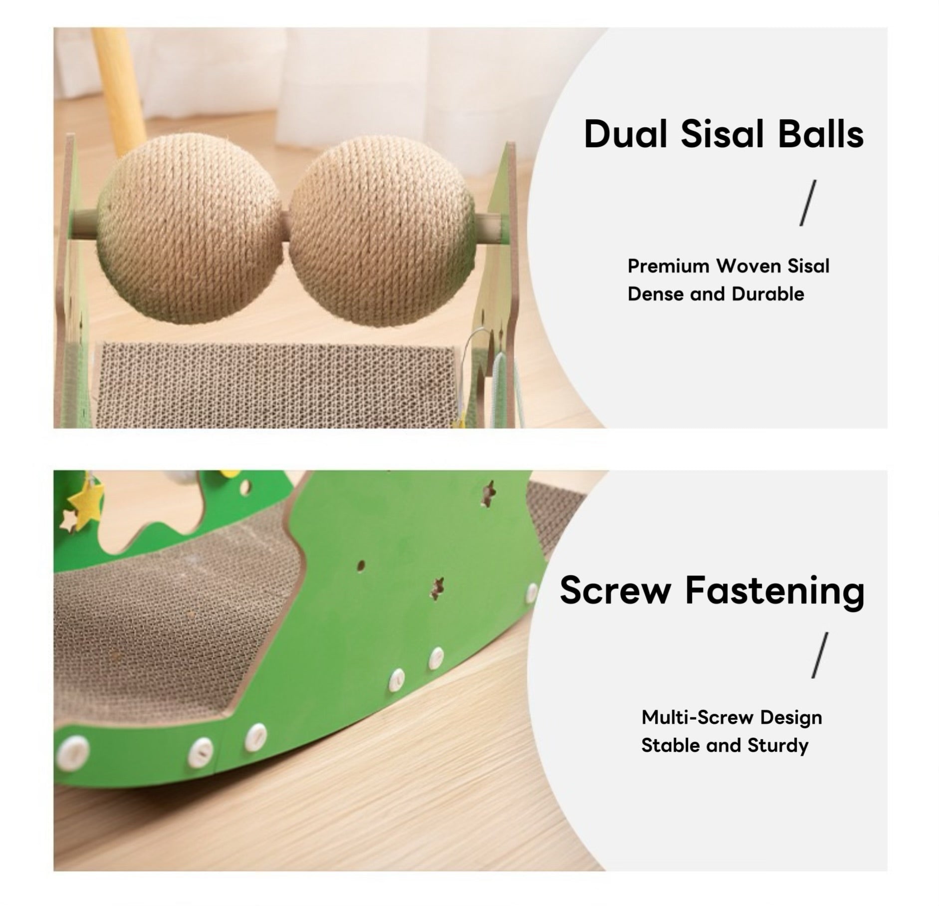Selected Material: Boost your cat's entertainment with our scratcher mat. Carefully crafted with two sisal balls and high-quality wood board, sisal, and cardboard materials, it doesn't harm your cat's claws