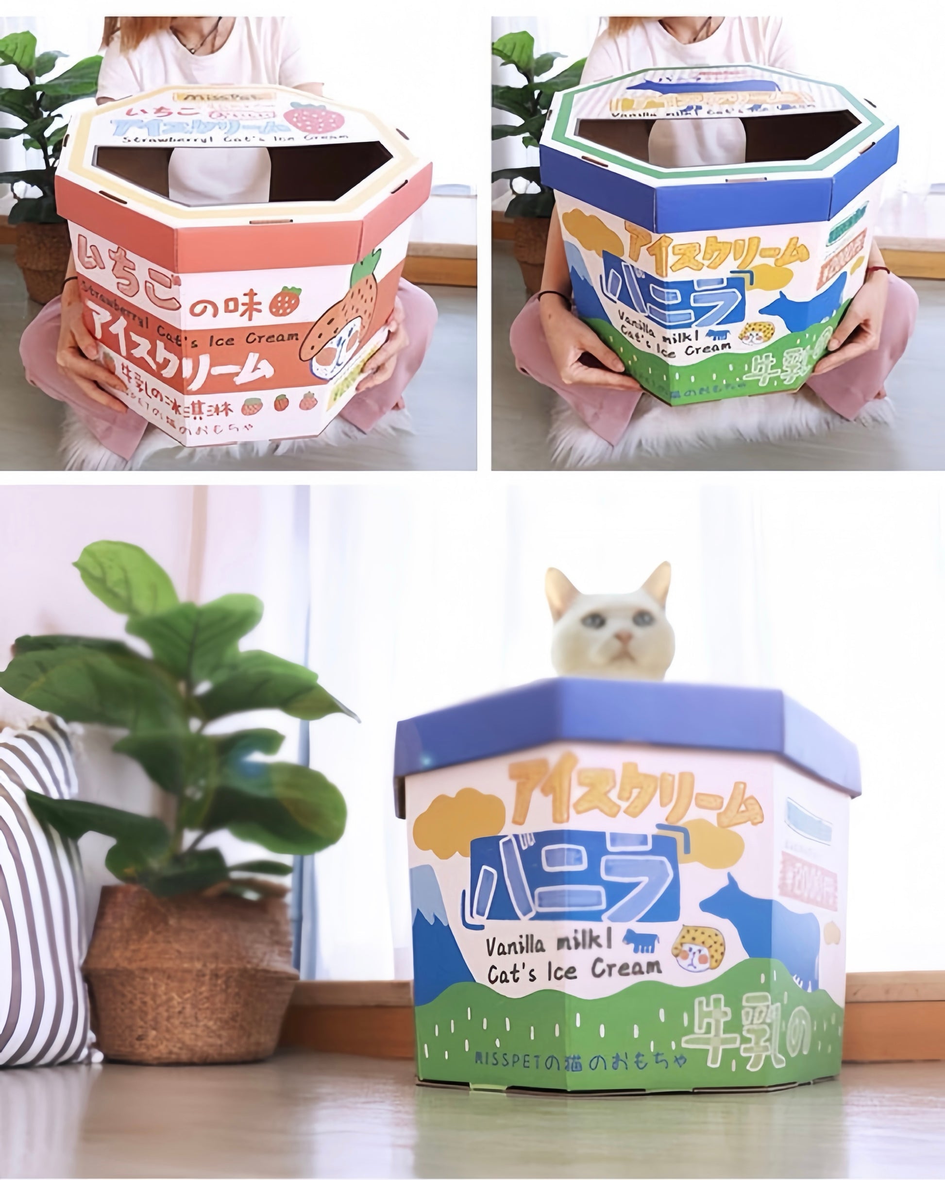 Shaped like a cup of icy sweetness, the charming ice cream design turns your cat into the centerpiece of your home! Stylish enough to place in any room or cozy cat corner.