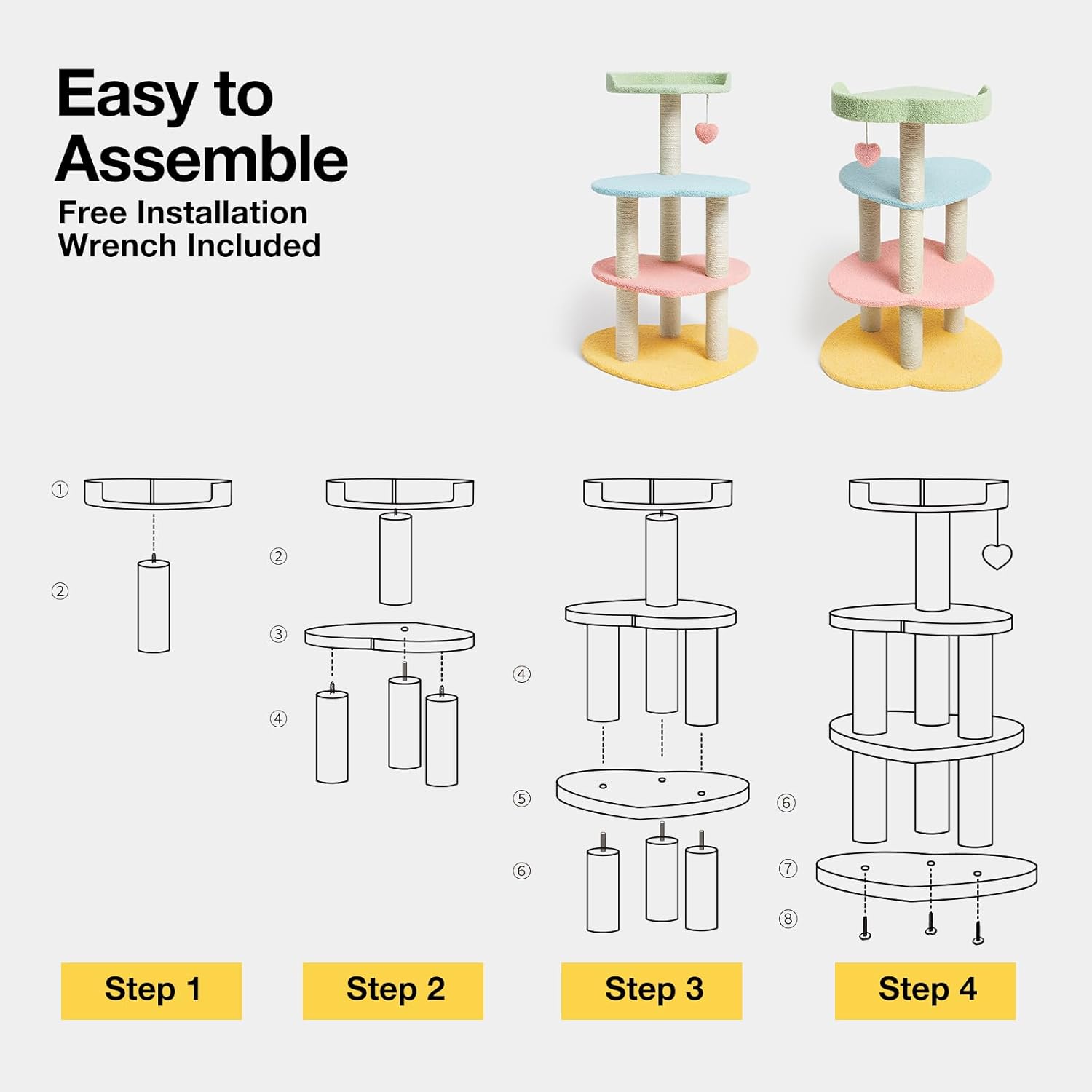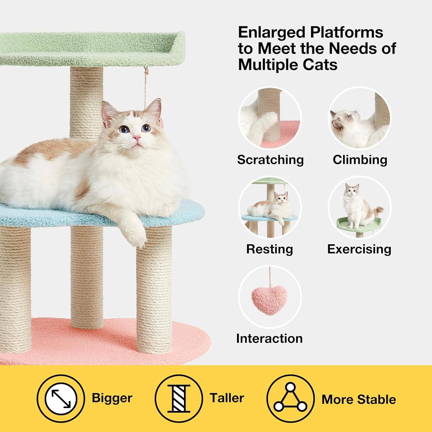 VETRESKA Cat Tree Cat Tower 38.6'' for Indoor Cats with Sisal Covered Scratching Posts and Sweetheart Shape Platform, Multi-Level Cat Tower Activity Center Furniture for Kittens Cats and Pets