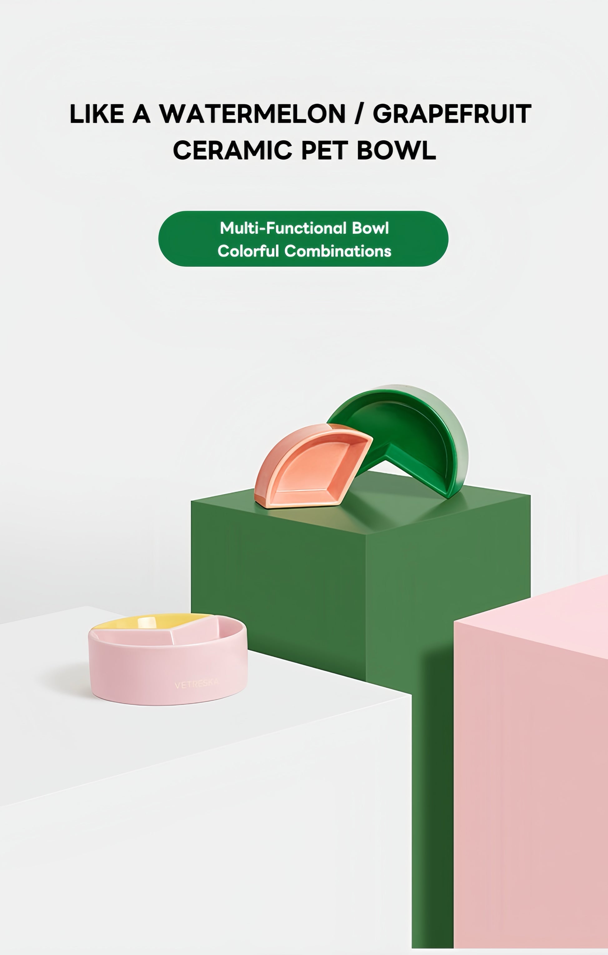 VETRESKA Like A Watermelon / Grapefruit Ceramic Bowl For Cats & Dogs