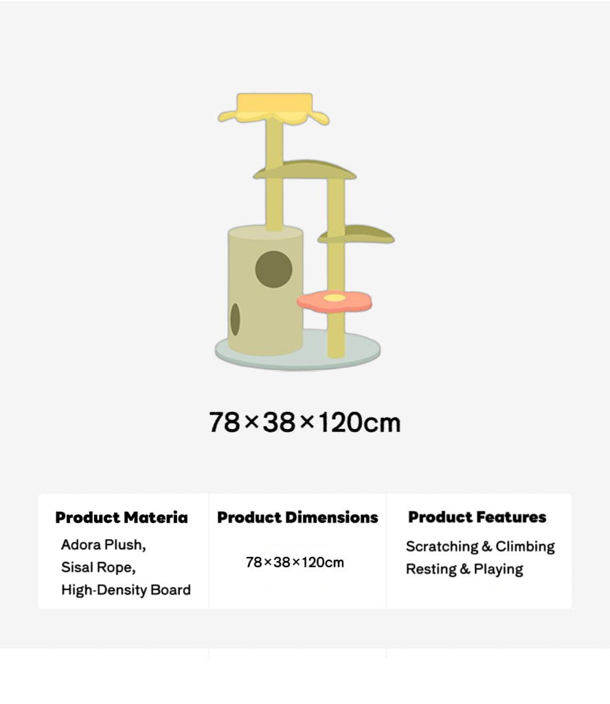 Multi-function: Tailored for multi-cat families, adding a flower-shaped gazebo and a double-layer tree-hole cat house to increase the fun of cats playing and exploring.