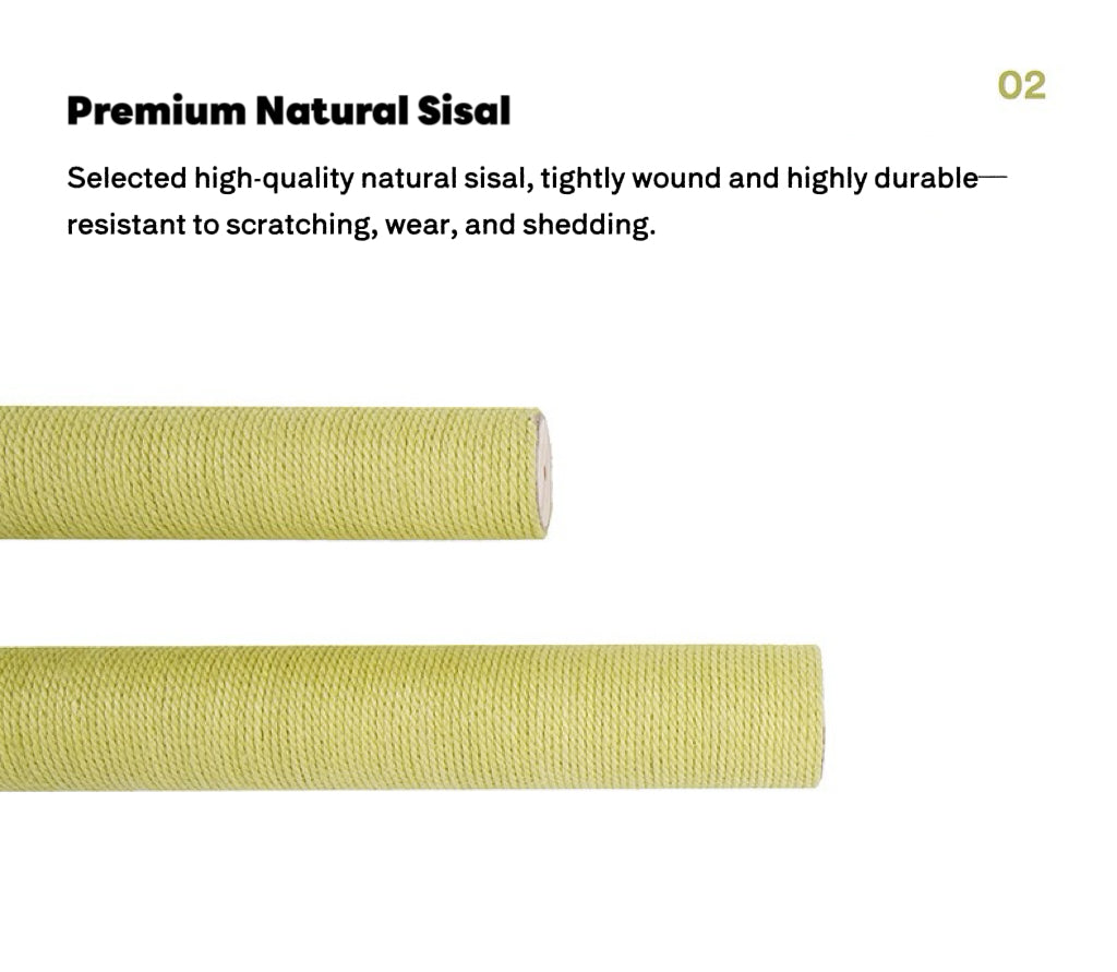 Protecting furniture: The scratching post is tightly wound with thick hemp rope, which is strong and resistant to scratching, allowing cats to sharpen their claws as much as possible, and protect the furniture from damage.