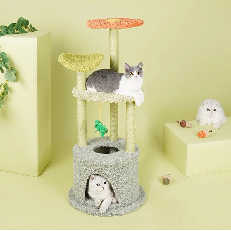 ZEZE Aidola Flower House Cat Tree Lotus Leaf Cat Tree Cat Tower Indoor,Scratching Post Jumping Toy Climbing Frame Integrated Multifunctional Apartment,for All Cats